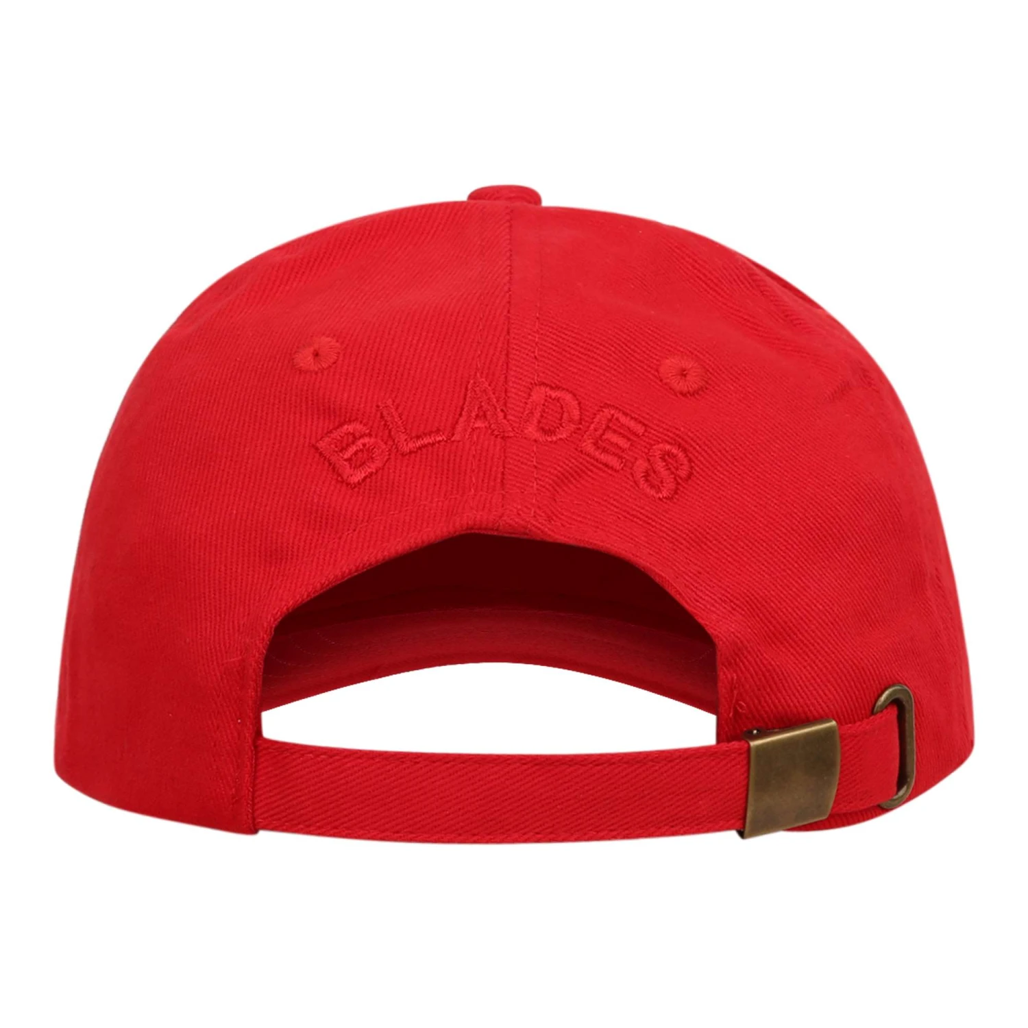 - Blades club cap in red. Sheffield United embroidered text on the front, blades embroidered text on the back.