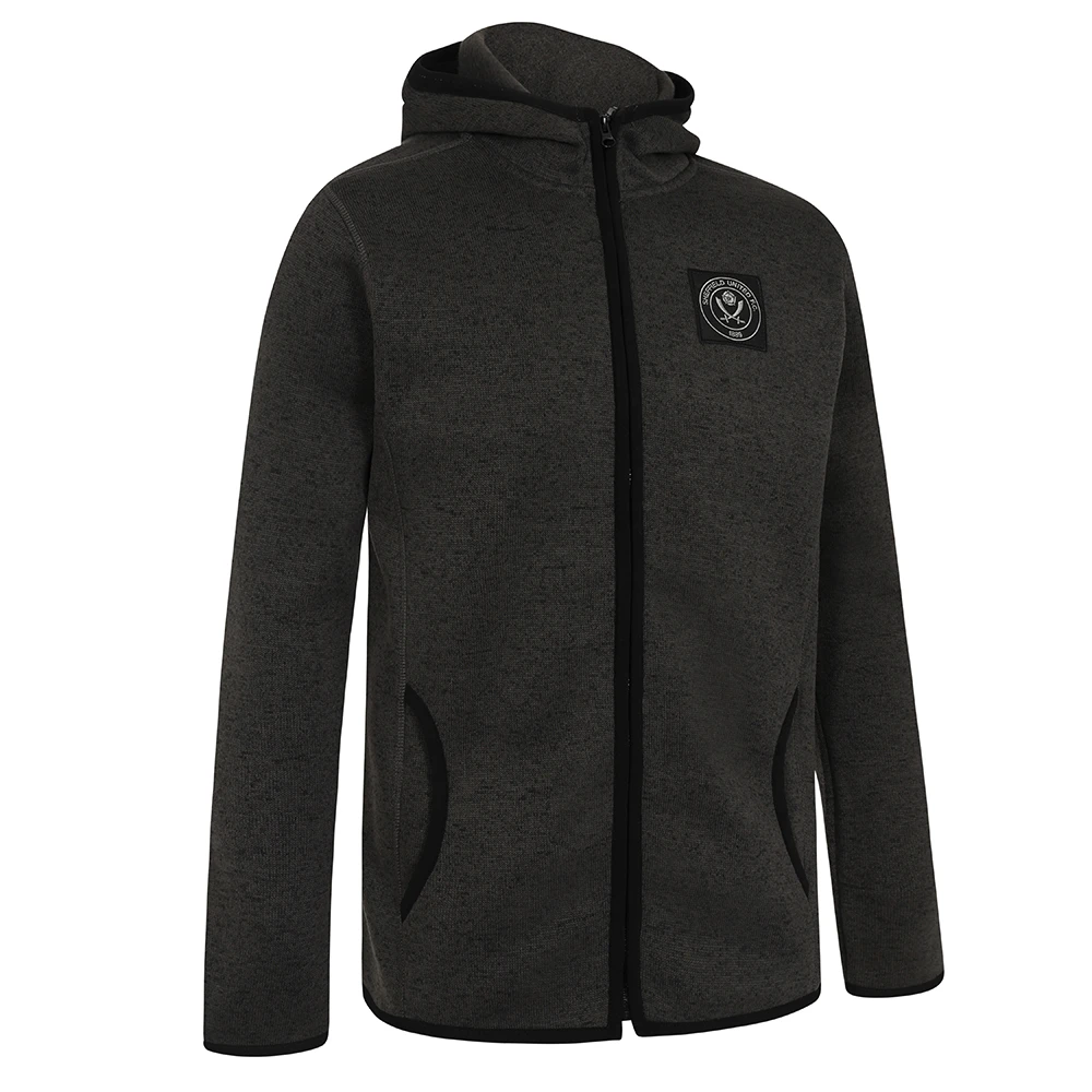 Grey and black crest zip jacket. Full zip with front pockets and hood. SUFC embroidered crest logo on left hand side chest. 100% polyester. Wash at 40 degrees. Do not bleach, or dry clean. Normal tumble dry.