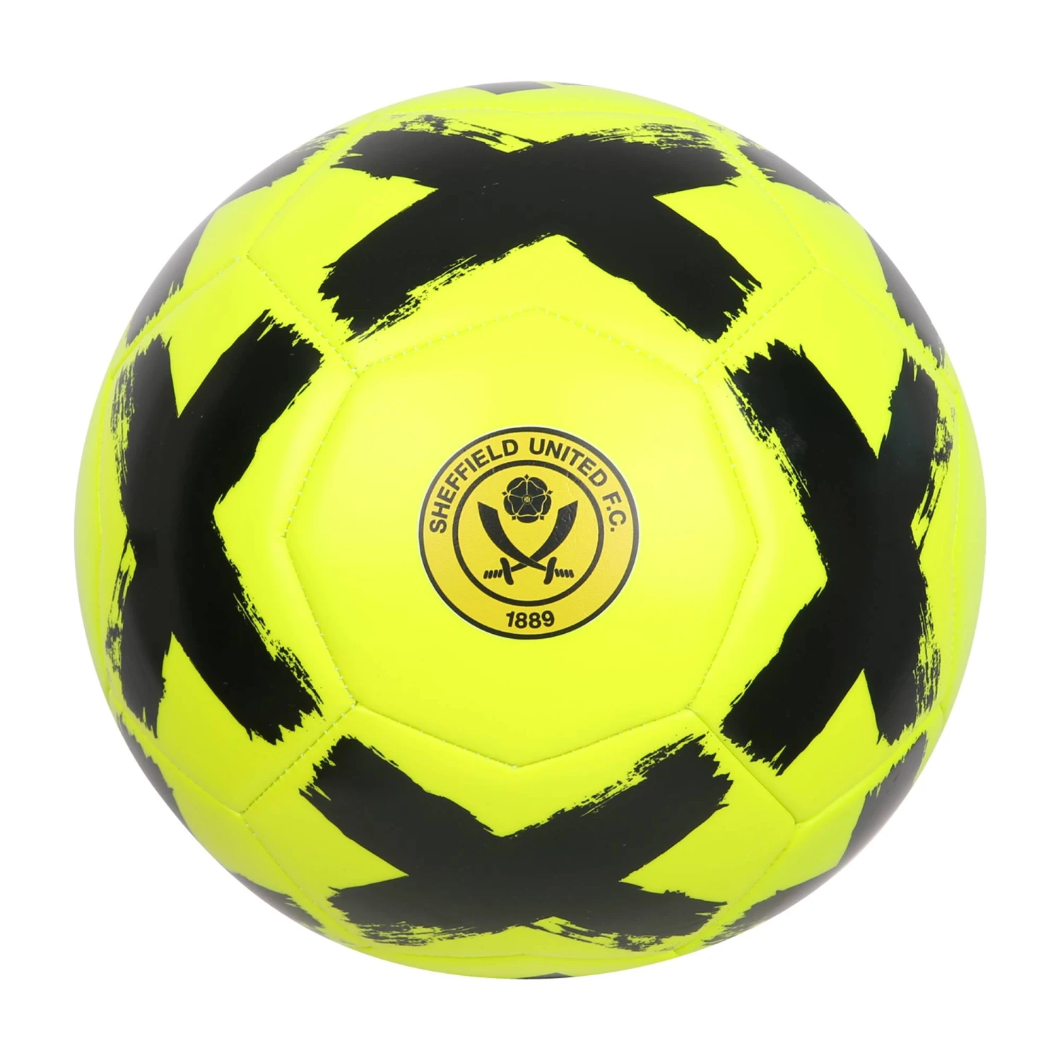 Neon yellow and black Adidas football. All over graphic print with SUFC crest logo. Size 5.