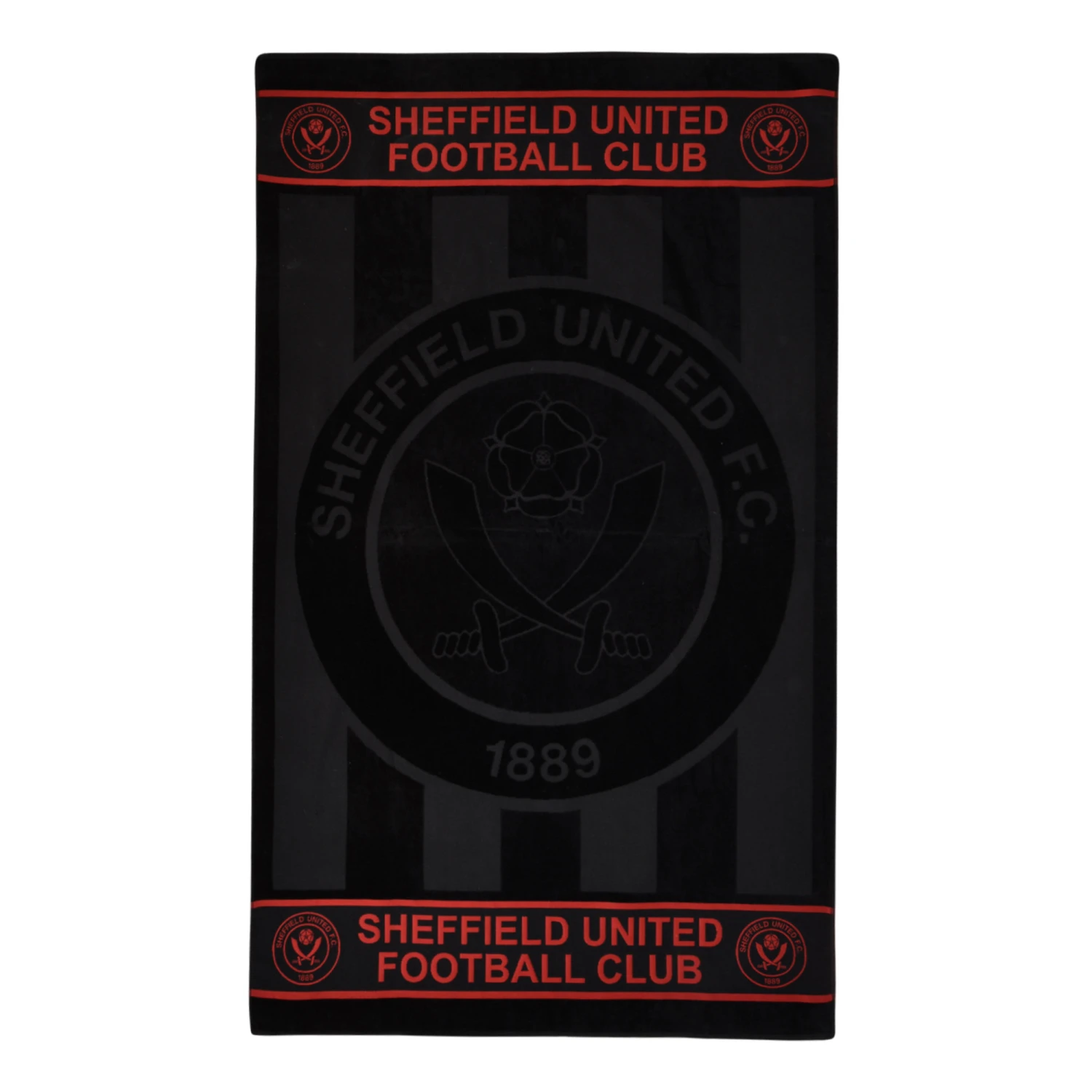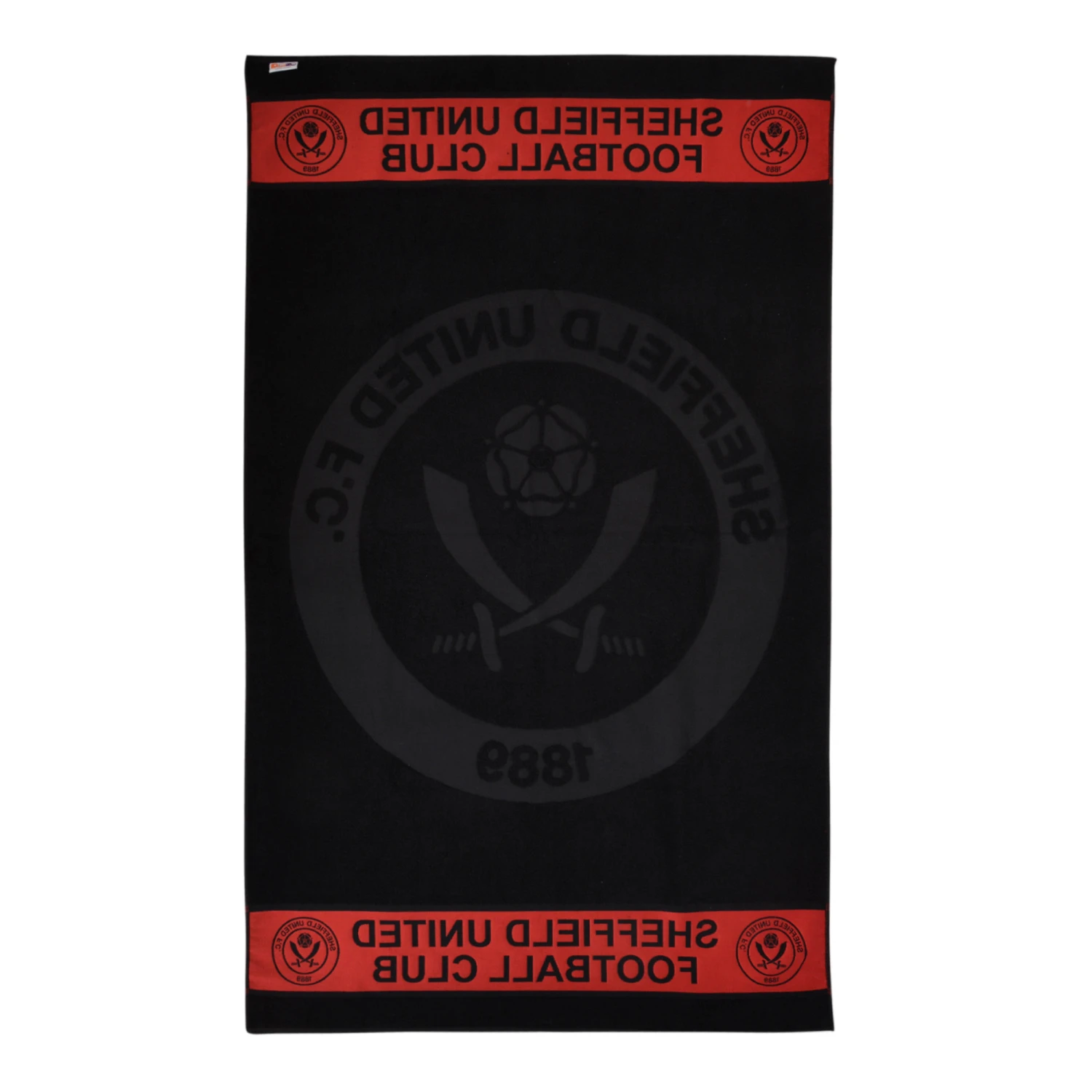 - SUFC black and red deluxe embossed towel. SUFC crest with striped detailing. Sheffield United Football Club text.